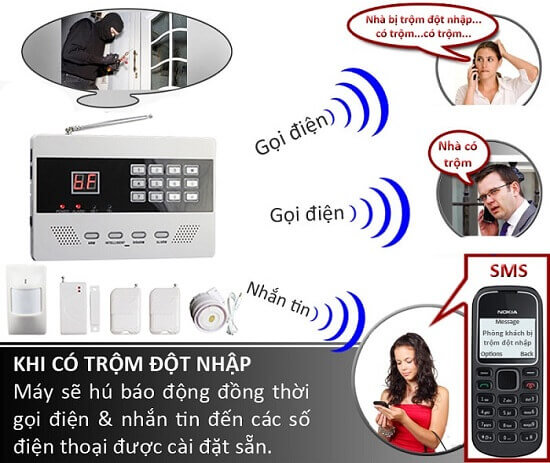 Trong thời đại công nghệ số hiện nay, bộ báo trộm qua điện thoại là giải pháp an ninh hữu hiệu nhất mang đến những tiện ích sử dụng thông minh được các công trình: nhà ở, văn phòng, nhà máy... Trọn bộ thiết bị bao gồm một hệ thống điều khiển trung tâm cùng rất nhiều thiết bị an ninh độc lập khác như: cảm biến cửa từ, cảm biến chuyển động, loa báo động tại chỗ.... tạo thành một hệ thống an ninh đa tầng và đồng bộ, giải quyết hiệu quả vấn đề trộm cướp xảy ra đối với ngôi nhà của bạn. Khi có người lạ đột nhập, chuông bao động sẽ kêu tại chỗ đồng thời thiết bị sẽ tự động gọi điện và nhắn tin về các số điện thoại được đăng ký nhận thông tin. Sản phẩm này vẫn duy trì hoạt động ngay cả khi mất điện (dao động từ 4-8 tiếng).