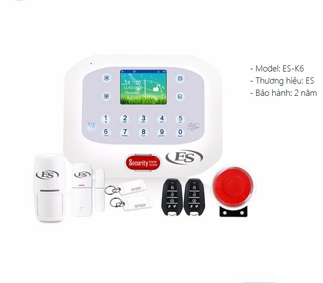 Chất lượng ổn định, phạm vi bảo vệ lớn, thiết kế 6 cổng kết nối có dây, thích hợp bảo vệ tại những công trình vừa và lớn, nhà biệt thự, văn phòng, nhà xưởng...Ngoài ra, phần mềm bộ báo trộm ES-K6 cũng được cải tiến, các nút chức năng được hiển thị bằng icon khiến quá trình sử dụng dễ dàng hơn với nhiều đối tượng khách hàng. Sản phẩm có giá thành tầm trung.