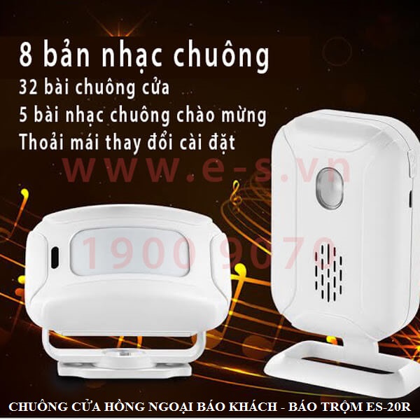 Còn nếu khách hàng theo xu hướng hiện đại, cuộc sống được tự đống hóa từ "a->z" thì mẫu chuông cửa hồng ngoại ES là phương án lý tưởng để bạn tham khảo. Mẫu chuông ES-20R, ES-12R ứng dụng công nghệ cảm biến hồng ngoại, thông qua sự chuyển động của người mà chuông cửa sẽ tự động reo. Với chức năng chuông cửa thông minh này sẽ giúp ngôi nhà của bạn thêm phần thời thượng, đẳng cấp hơn. Đồng thời, vào ban đêm chuông cửa hồng ngoại trở thành thiết bị báo trộm vô cùng hữu dụng cho mọi nhà.
